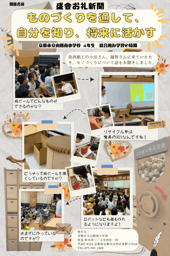 洛西紙工株式会社は、ダンボールを通じて、京都のキャリア教育・環境教育に貢献する活動を今後も継続してまいります。